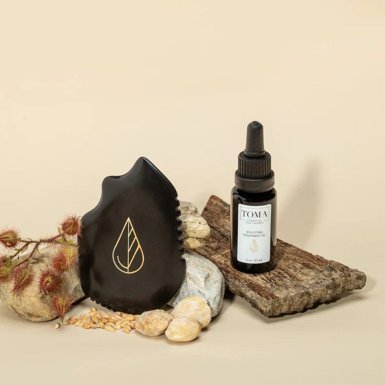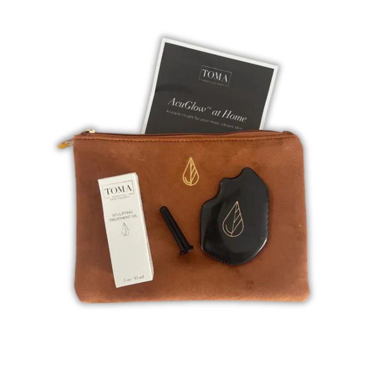 Developed through over 30 years of collective experience in Traditional Chinese Medicine, the AcuGlow™ At-Home Kit brings TOMA’s signature facial sculpting ritual to your daily routine. This complete system combines therapeutic tools and bioadaptive botanicals to lift, tone, and restore natural luminosity. The Sculpting Treatment Oil nourishes and hydrates with essential fatty acids, the Facial Sculpting Stone refines contours and improves circulation, and the facial cup gently plumps and defines. Each set comes beautifully packaged in a velvet pouch with a detailed pictorial guide for effortless home practice. Save $22 when purchased as a system.