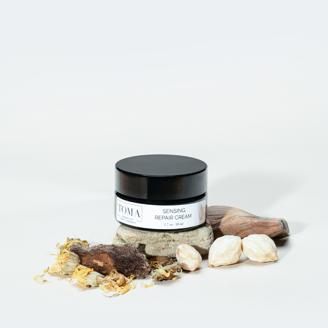 We set out to create a deeply moisturizing repair cream that hydrates without feeling heavy or greasy. We formulated our Sensing Repair Cream to absorb easily into the skin, delivering antioxidants and nutrients for cellular repair and renewal. Used night and day year-round by those with dry skin, we find many combine it with our Tonifying Protective Lotion in the warmer, more humid months and use as only a night cream.